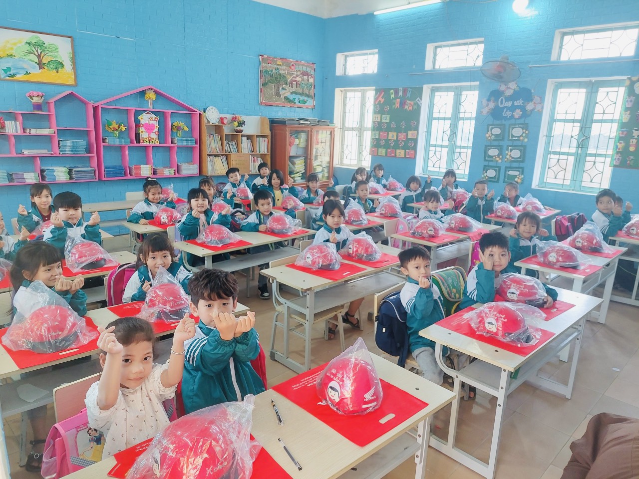 🚹🚹🚹 BGH nhà trường đã ký nhận bàn giao mũ bảo hiểm và thực hiện cam kết chấp hành quy định về việc đội mũ bảo hiểm cho các em khi tham gia giao thông. Các em cũng đã được các thầy cô giáo hướng dẫn cách đội mũ bảo hiểm đúng quy định.